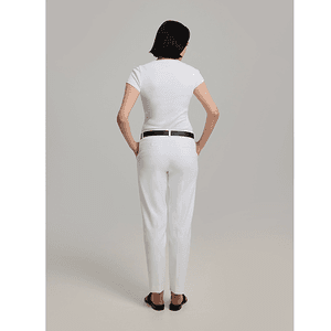 Enkle og tidløse Jamy dressbukser i kraftig stretchjersey med bomull. Smal passform med middels høy midje og ankellengde på beina. Designet med beltehemper, sidelommer og skjult glidelås- og knappelukking. Ren konstruksjon for et strømlinjeformet uttrykk. En vinner i hverdagsgarderoben og perfekt til kontoret sammen med en blazer, for eksempel Brette fra samme merke.