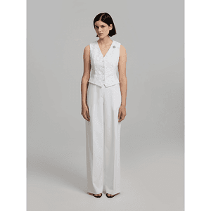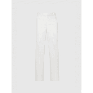 Skreddersydde Katya bukser i bomullsblanding med en rett, vid silhuett og full lengde. Designet med skarpe pressfolder foran og bak i tillegg til lommer i sidene. Avsluttet med skjult glidelås på front og en strukturert linning. Kombiner gjerne med Brette Blazer for et klassisk, kraftfullt antrekk i sommerlig hvit.