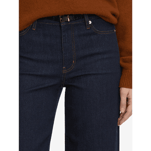 Svært flatterende Le Slim Palazzo fra Frame. En utrolig flatterende jeans i en mørk blå, ren vask som passer utmerket på kontoret. Middels høy i livet med klassisk 5-lommers utførelse. Buksene er ettersittende i livet og godt nedover baken og lårene før de svinger ut fra over knærne. God vidde over leggene, som bidrar til en feminin og balansert silhuett. Normale i størrelsen, men ved tvil kan du vippe ned. Kombiner med bluser og enkle topper og en god blazer over. Høye heler er fint til jobb, mens boots kan passe bedre til velkledd fritid. Dette er en favoritt som er behagelig og myk å ha på, men som holder seg godt.