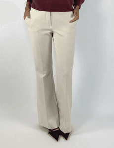 Stilren bukse med sleng fra Seductive. Modellen har en figurnær passform over hofte og lår, og glir ut i en klassisk bootcut-fasong. Den sitter komfortabelt i midjen og har rene linjer med stikklommer foran, passepoilerte lommer bak og beltehemper. Det lette og fallende stoffet er både smidig og krøllbestandig – perfekt for en travel hverdag der du vil føle deg velkledd uten anstrengelse. Bruk den med en blazer eller en enkel topp for en oppdatert, tidløs look. Buksen er god i størrelsen, så du kan fint vippe ned dersom du er i tvil. Buksen finnes også i fargene sort, grå og navy.