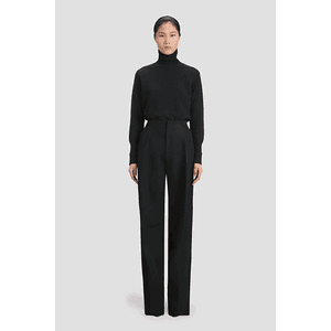 Enkel og anvendelig genser i sort lammeull med høy hals og sadelskuldre. Normalt nett i fasongen - ikke trang eller ettersittende, bare smal. Perfekt til jeans på velkledd hverdag, men også fin til dressbukser i jobbsammenheng. Normal i størrelsen. Vi anbefaler at du velger din vanlige størrelse evt. vipper opp dersom du føler du faller mellom størrelser.