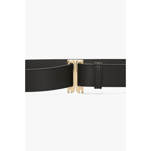 Pent smokingaktig belte i mykt, sort kalveskinn med hardwear i gull. Beltespennen er inspirert av B´en i Beckham. Enkelt, flott og svært anvendelig - til dressbukser, jeans eller for å markere midjen på en kjole eller en blazer.  Merk størrelser i S - M - L -XL som er hhv. 70, 80, 90 og 100 cm lange.